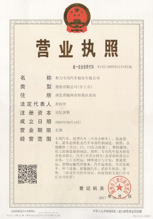 程力专用汽车股份有限公司生产各类专用汽车的专业厂家,大型专用汽车制造厂,国内园林绿化、石油化工、市政环卫专用汽车制造商。注册商标“程力威”牌,国家产品代码:“CLW”东风、解放公司的重要合作伙伴,主要从事各类专用汽车的生产制造业务,同时也销售各大型厂家的整车及配件。我公司拥有自行出口权,产品占据大量国外市场,其主导品种有洒水车系列、吸粪(吸污)车系列、垃圾车系列、扫地车系列、油罐加油车系列、高空作业车系列、随车吊系列、自卸车系列、教练车系列、半挂车系列、压力容器系列等十八大系列300多个品种车型。同时批发东风、解放、楚风各种二类底盘。