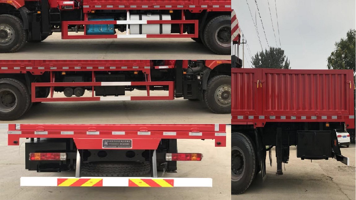 | 1.该车仅选用5800+1350mm轴距底盘,仅选用发动机型号为:CA6DK1-28E6的发动机;2.ABS系统生产厂家:长春瑞立科密汽车电子有限公司,型号:CM4XL.装备限速装置,限速89km /h.安装具有卫星定位功能的行驶记录仪;3.可选装直臂式或折臂式起重机,直臂式起重机型号/最大起重载荷(kg)/ 起重机质量(kg)为: SQ10A/10000/4500;折臂式起重机型号/最大起重载荷(kg)/ 起重机质量(kg)为: SQ10Z/10000/4500;4.侧面防护装置的横杆材料为Q235,螺栓连接,后下部防护装置的横梁材料为16MnREL,螺栓连接,断面尺寸135×70mm,离地高度为480mm;5.油耗申报值与发动机对应关系:32.0(CA6DK1-28E6). |