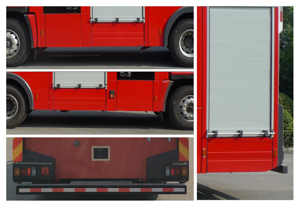 | 水罐容积:12.100立方米,水罐尺寸:2995×2490×1680mm;整体式侧防护结构,后防护装置材料:Q235A,截面尺寸(高×宽):120×100mm,与车辆连接方式:螺栓连接,后防护离地高度:400mm;ABS生产企业为浙江亚太机电股份有限公司,型号为APG3550500H1,主要专用装置有消防泵、消防炮。 |