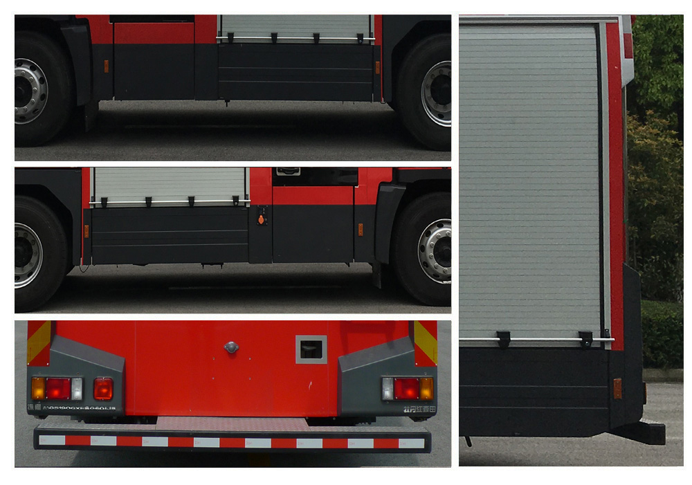 | 水罐容积:5.900立方米,水罐尺寸:2695×1350×1680mm;整体式侧防护结构,后防护装置材料:Q235A,截面尺寸(高×宽):120×100mm,与车辆连接方式:螺栓连接,后防护离地高度:410mm;前伸:315mm;ABS生产企业为浙江亚太机电股份有限公司,型号为APG3550500H1,主要专用装置有消防泵、消防炮 |