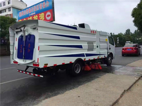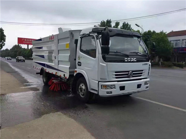 6、喷水降尘选用优质高效的离心水泵:流量大,压力高,能够有效的降低清扫扬尘,及减少吸口堵塞,该车在清扫刷盘装有不锈钢喷水架及铜质降尘喷头。
