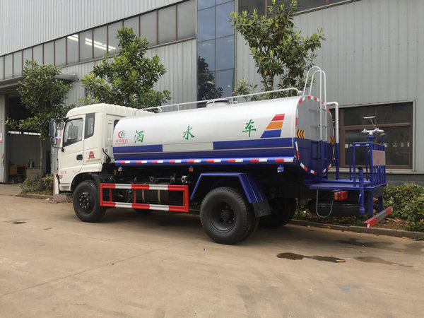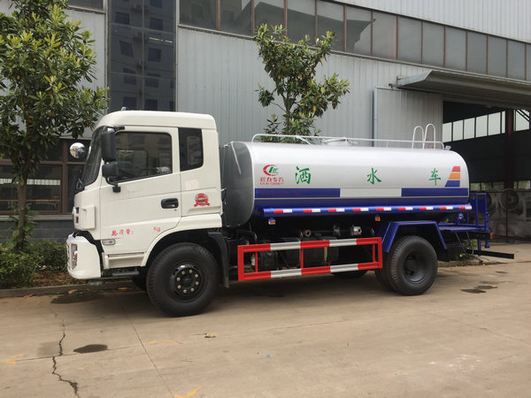 标准配置:罐体材质为厚4mm武钢优质板材,洒水泵,洒水高炮,工作平台,取力器,前冲,后洒,自流阀,滤网,分配阀,喷头,带自吸自排功能。