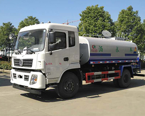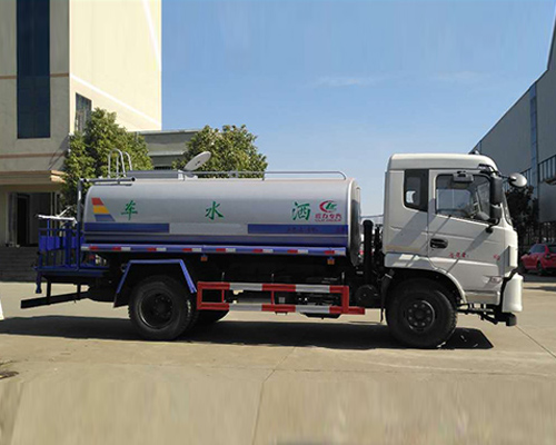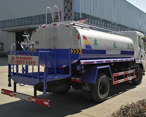 标准配置:罐体材质为厚4mm武钢优质板材,洒水泵,洒水高炮,工作平台,取力器,前冲,后洒,自流阀,滤网,分配阀,喷头,带自吸自排功能。