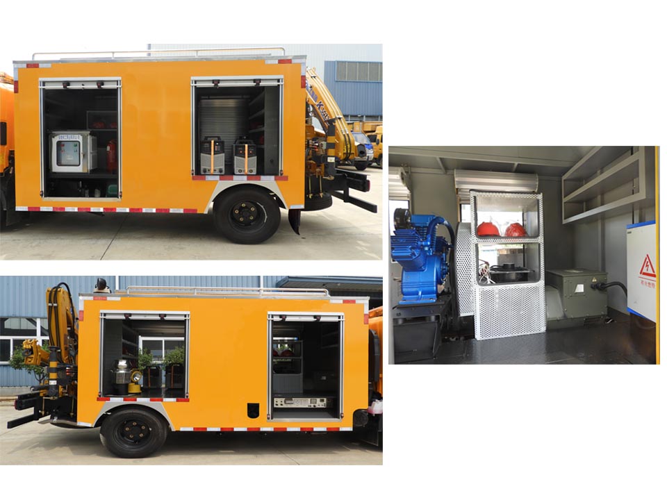 | 1.该车专用装置为发电机;随车起重机;主要用于各种场合应急救险;该车驾驶室与厢体分离;厢体顶部密闭,不可开启;2.厢体后部加装徐工牌随车起重机,起重机型号,最大起升载荷及质量分别为(Kg): SQZ32、1490、700;3.侧防护为裙边结构, 材质为Q235;后防护装置材质为Q235,连接方式为焊接,断面尺寸100×50mm,离地高度:435mm; 4.厢体内部可选装便携式潜水泵;电焊机;等离子切割机等应急救险常用工具;5.液刹ABS系统型号:APG3550500A,ABS系统生产厂家:浙江亚太机电股份有限公司;气刹ABS系统型号:VIE ABS-II,ABS系统生产厂家:浙江万安科技股份有限公司;6.JX4D30A6H发动机最大净功率93KW,JX4D306H发动机最大净功率110kw. |