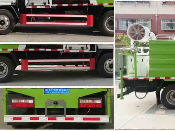 | 随底盘选装驾驶室.侧防护及后下部防护装置均采用Q235A材质,均采用焊接连接,后下部防护尺寸:50×120(mm),离地面高度390mm;ABS厂家及型号:襄阳东风隆诚机械有限责任公司/ABS /ASR -12V-4S/4M.专用装置为抑尘雾炮,用于矿场,露天堆场及爆破现场等的喷雾抑尘.整车长/轴距/后悬对应关系为(mm):6400/3308/2037,5905/2950/1900,5455/2700/1700. |
